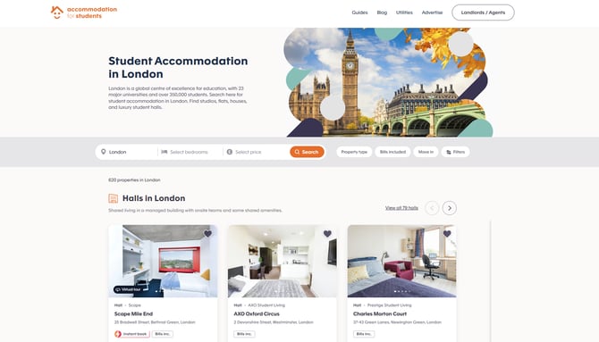 This will then bring back the results based on your requirements. The results will show all the available properties offering short-term lets in the city you are looking for a place to live in. You can select the property that most closely matches your requirements. The example below shows the accommodation currently available on a short-term basis in London.